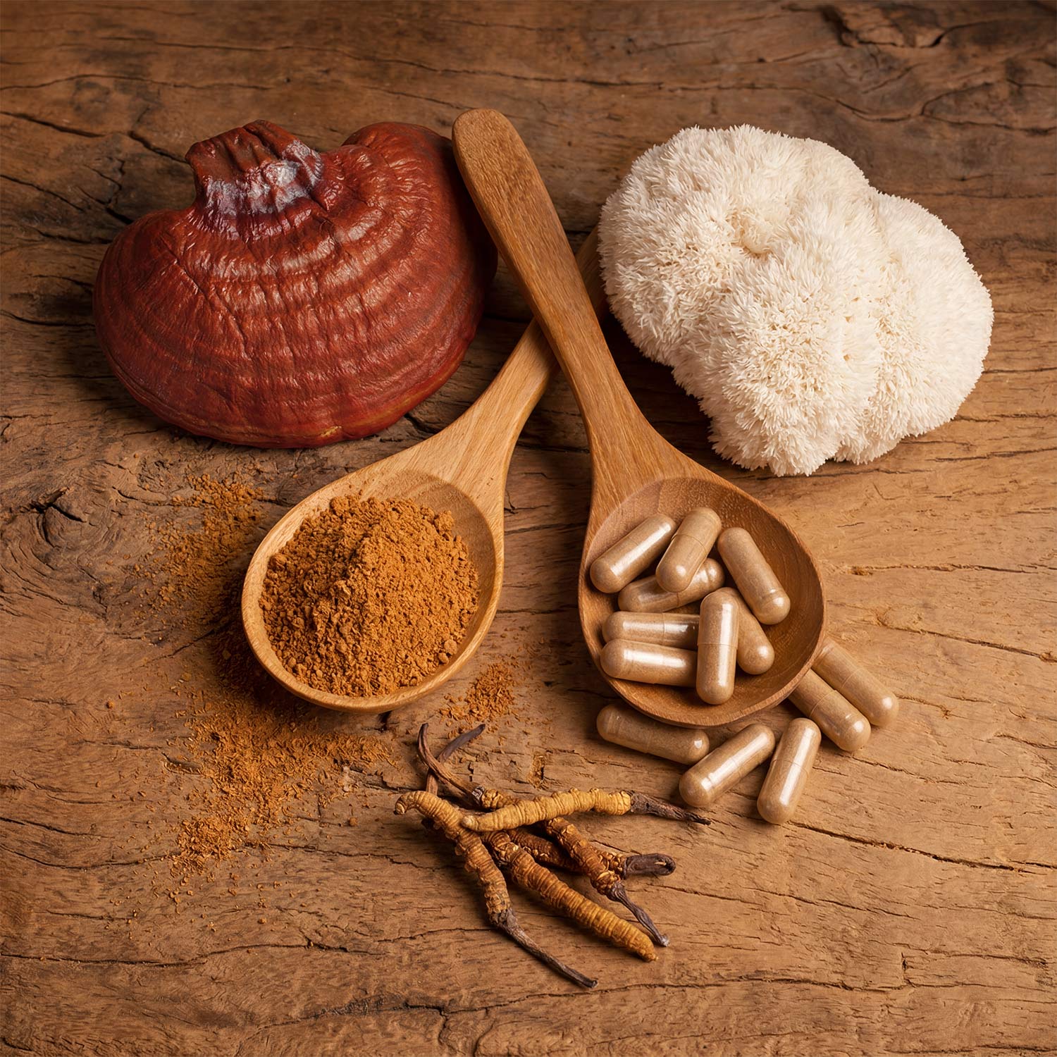 Pilze gehören weder zum Tier- noch zum Pflanzenreich. Sie bilden eine eigene Gattung und haben über die Jahrtausende intelligente Überlebensstrategien entwickelt. Bemerkenswert sind vor allem Vitalpilze, weil sie wertvolle Inhaltsstoffe enthalten, die dem Körper zu mehr Wohlbefinden verhelfen können. Einer der bekanntesten Vitalpilze ist der Reishi – ein Allrounder und Alleskönner. Er wird als „Pilz der Unsterblichkeit“ viel verwendet und geschätzt. Weitere Vitalpilze sind: Cordyceps, Agaricus, Hericium, Auricularia, Maitake, Pleurotus, Polyporus, Shiitake, Enoki, Chaga, Coriolus und sogar der beliebte und bekannte Champignon ist ein Vitalpilz und besitzt nutzbringende Inhaltsstoffe.